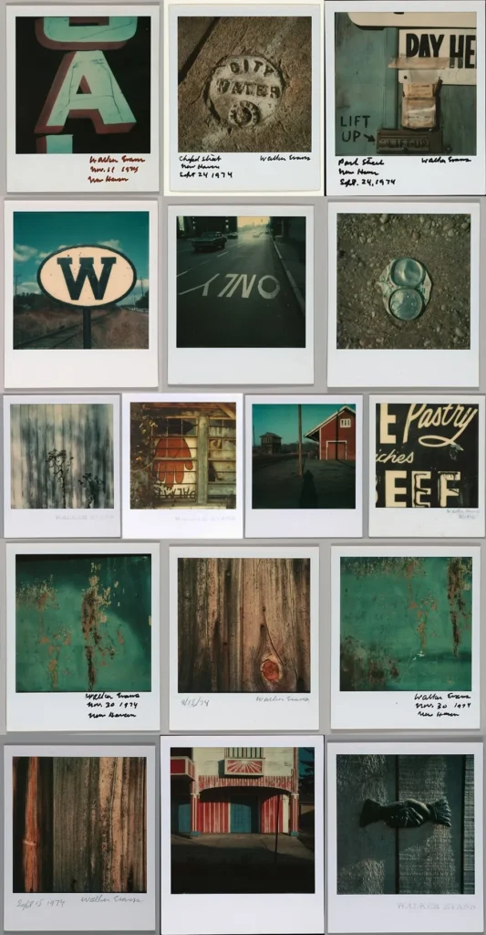 La Polaroid mostró el mundo a color de Evans. Un cosmos compuesto por señales de tránsito, calles, parafernalia americana, basura…